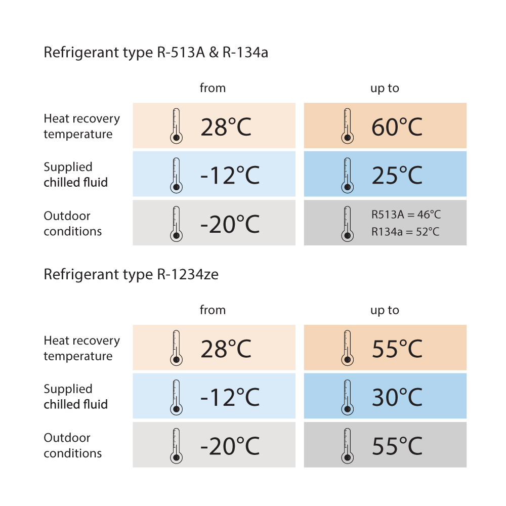 Это позволяет рекуперировать часть или все тепло, выделяемое в процессе охлаждения. Также повышает энергоэффективность и снижает эксплуатационные расходы. При наличии полной рекуперации теплоты блок оснащен дополнительным конденсатором на контур для получения горячей воды. В случае частичной рекуперации теплоты блок оснащен одним пароохладителем на контур для получения горячей воды. Эта система рекуперации теплоты позволяет обеспечить ГВС для конкретных нужд.